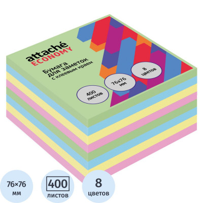 Бумага для заметок с клеевым краем Economy 76х76 мм, 400 л, 8 цв в асс