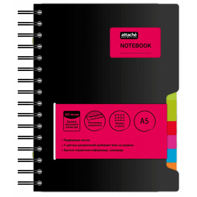 Бизнес-тетрадь Тетрадь Attache Neon А4 96л кл.спираль, обл.пластик, розовый
