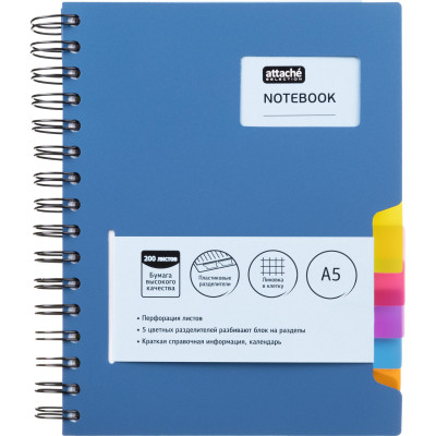 Бизнес-тетрадь А5,200л,кл,греб Attache Selection Office book синий металлик