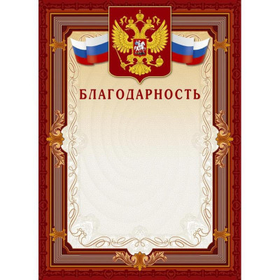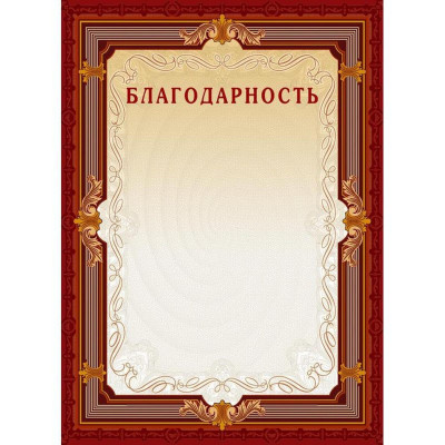 Благодарность А4-15/Б кор.рамка,без герба230г/кв.м10шт/уп