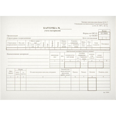 Бланк Карточка учета материалов М17 А5 (50шт. в термоуп.)