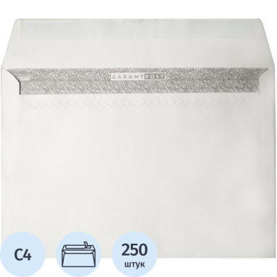 Конверт белый C4 стрип Garantpost229х324 100г250шт/уп/3810