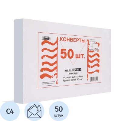 Конверт белый С4 декстрин OfficePost 229х324 50шт/уп/3154