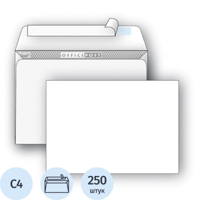 Конверт белый С4 стрип OfficePost 229х324 250шт/уп/3657