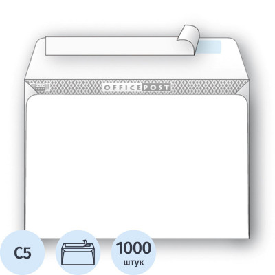 Конверт белый С5 стрип OfficePost 162х229 1000шт/кор 2781