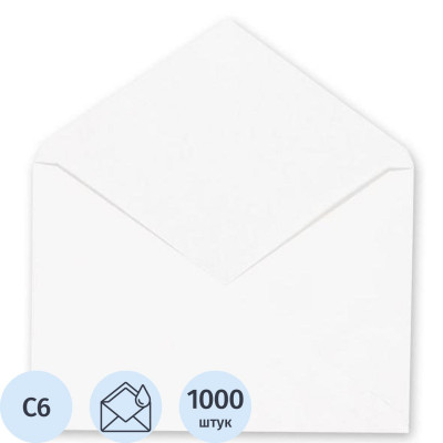 Конверт белый С6 декстрин 114х162 80г Рос 1000шт/ уп