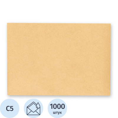 Конверт Крафт С5 декстрин 162х229 треуг.кл., 90г Рос 1000шт/ уп
