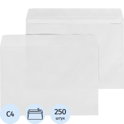Конверт белый С4 стрип 229х324 90г КОМУС 250шт/ уп