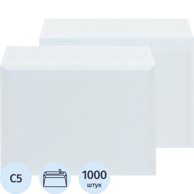 Конверт белый С5 стрип 162х229 80г КОМУС 1000шт/ уп
