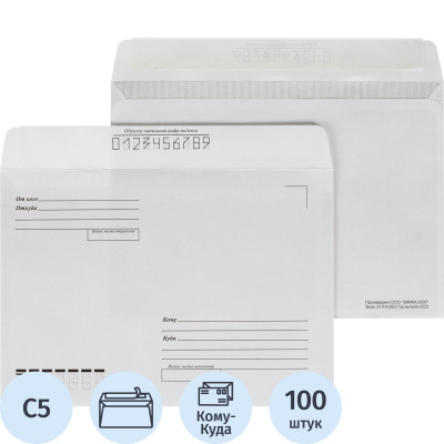 Конверт Куда-Кому С5 декстрин/автомат 162х229 80г КОМУС 50 шт/уп