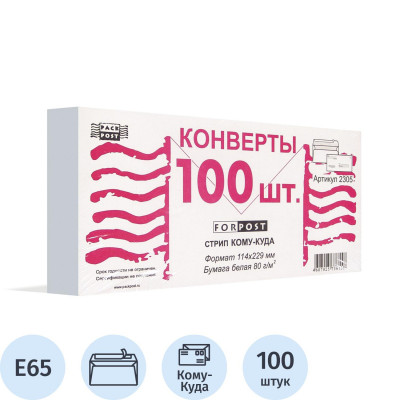 Конверт Куда-Кому E65 стрип ForPost 110х220 100шт/уп/1805