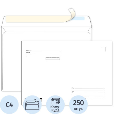 Конверт Куда-Кому С4 стрип ForPost 229х324 250шт/уп 3680