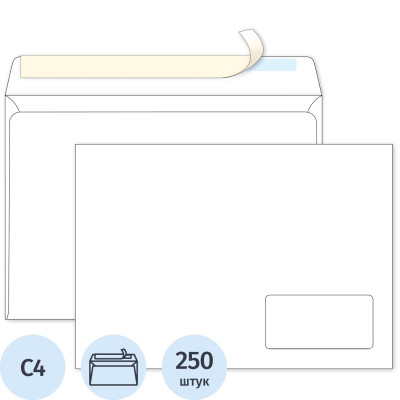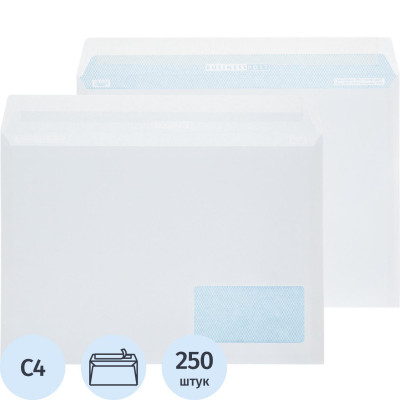 Конверт С4 BUSINESSPOST стрип прав.ниж окно (55x110)100г/м2 250шт/уп