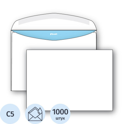 Конверт С5 декстрин/автомат 162х229 80г КОМУС 1000 шт/ уп