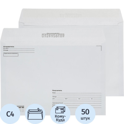 Конверт Куда-Кому С4 декстрин 229х324, 90г/м2 КОМУС 50шт/уп