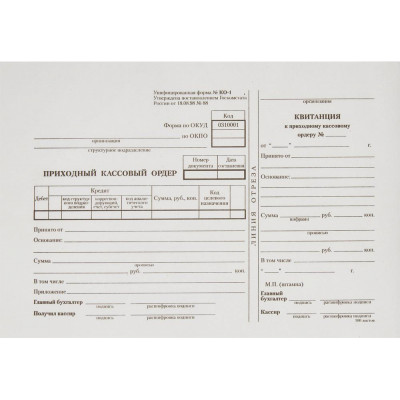 Бланк Прих.кассовый ордер (5кн.х100л.) офсет
