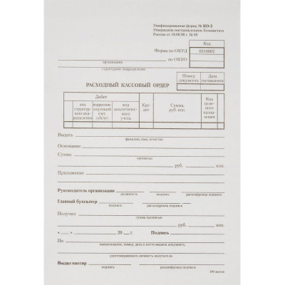Бланк Расходный кассовый ордер (книж.100л.) в терм.пл. офсет