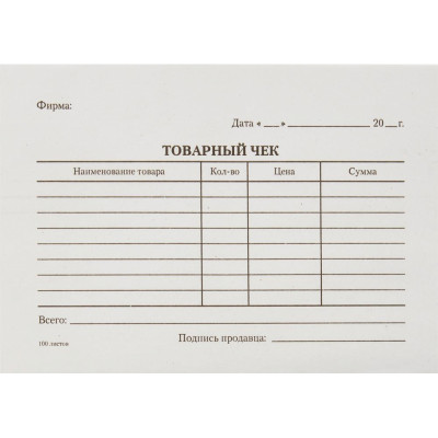 Бланк Товарный чек (книж.100л.) в термоусад.пленке офсет N1