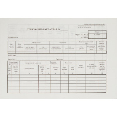 Бланк Требование-накладная (книж.100л.) в термоус. офсет