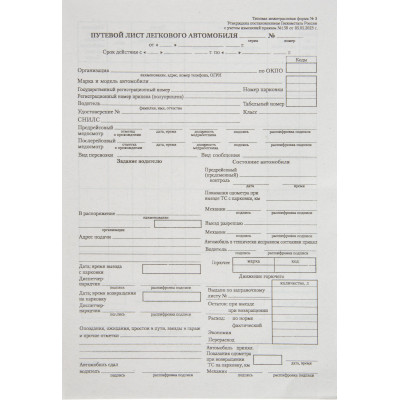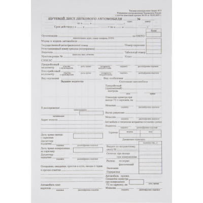 Бланк Путевой лист легк.авто (книж.100л.) в термоус.офсет (67001)