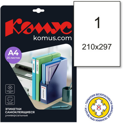 Этикетки самоклеящиеся 210х297мм,80г белая глянцевая (25л/уп)
