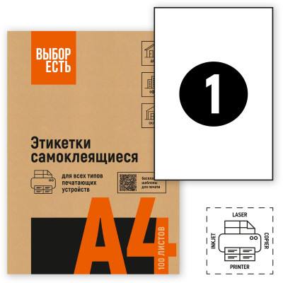 Этикетки самоклеящиеся 210х297мм, 80г белая .глянц.(100л/уп.)