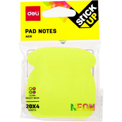 Стикеры с клеевым краем Deli 76х76 мм,20 листов,неон-е,форма в асс-те