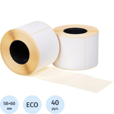 Термоэтикетки ЭКО 58х60, 500шт/рул, легк.кл, вт.40, 40рул/уп(ПК)