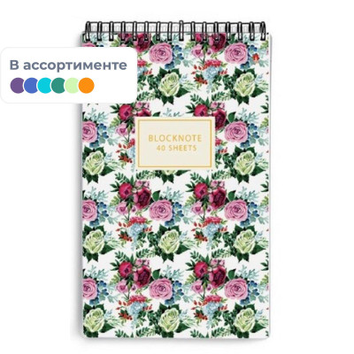 Блокнот А5,40л,клетка,гребень ЦВЕТЫ.ПАТТЕРН 3-40-251 в ассорт