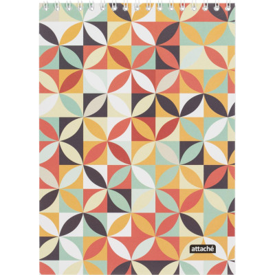 Блокнот А5 40л Attache Яркий паттерн Пастельный микс клетка, греб, ВД-лак