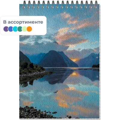 Блокнот А5,80л,клетка,метал.гребень,цв.обложка Природа,в ассорт