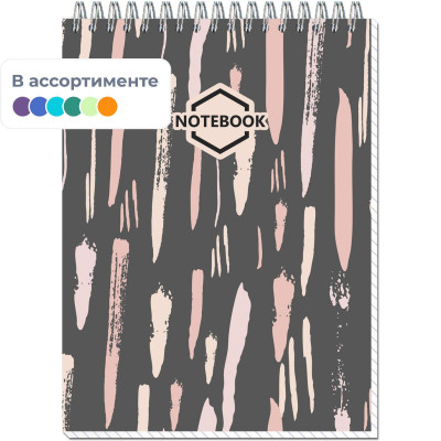Блокнот А5,60л,клетка,метал.гребень,цв.обложка Стильный Офис 2741 в ассорт