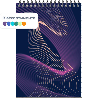 Блокнот А5,80л,клетка,метал.гребень,цв.обложка Forma,в ассорт