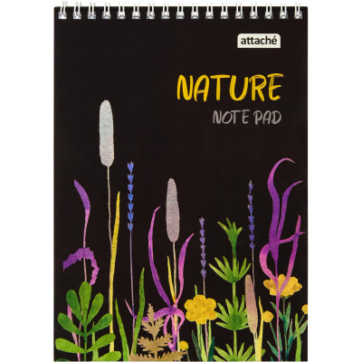 Блокнот А5 60л Attache Nature Black flowers клет,65г,100%,греб,карт,ВД-лак