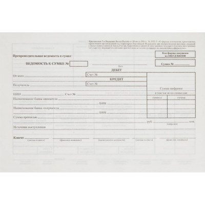 Бланк Препровод. вед-ть денеж. наличн. (кн.100л.) офсет т/у 6