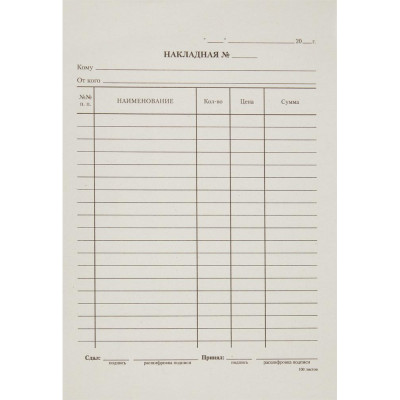 Бланк Накладная, А5,(кн100л), газетн.бум. 20кн/уп