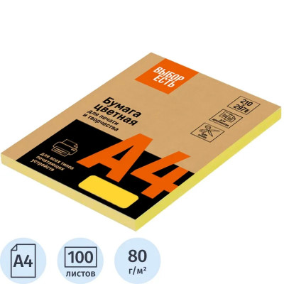 Бумага цветная Выбор есть (А4, 80 г, желтый интенсив) 100 л