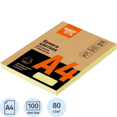 Бумага цветная Выбор есть (А4, 80 г, желтая пастель) 100 л