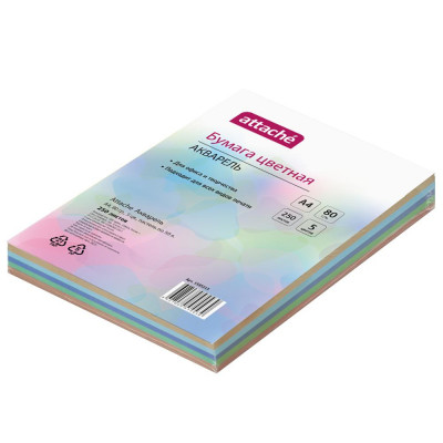 Бумага цветная Attache 'Акварель' (А4,80г,5цв. пастель по 5...