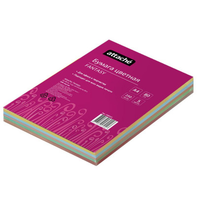 Бумага цветная Attache 'Fantasy' (А4,80г,5цв. интенсив по 5...