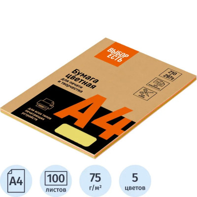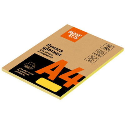 Бумага цветная Выбор есть (А4,75г,желтый неон) пачка 100л