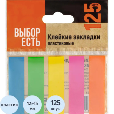 Клейкие закладки пласт. Выбор есть неон 45х12мм 5цв по 20л