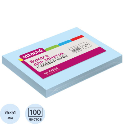 Стикеры ATTACHE с клеев.краем 76х51 голубой 100л