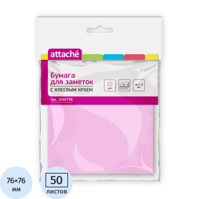 Стикеры ATTACHE с клеев.краем 76х76 розовый 50л