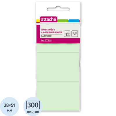 Стикеры ATTACHE с клеев.краем 38х51 салатовый 100л. 3 шт/наб