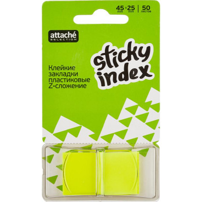 Клейкие закладки пласт. 1цв.по 50л. 25ммх45 неон желт Attache Selection
