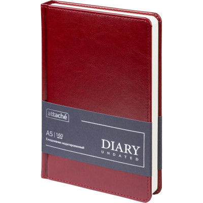 Ежедневник недатированный Attache А5, 160л, 138x213мм под кожу, бордовый
