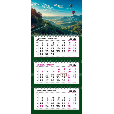 Календарь настенный 3-х блочный 2026 Attache Премиум,Возд. шар, 330х705,80г