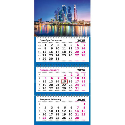 Календарь настенный 3-х блочный 2026 Attache, 305х675, Москва-Сити, 80г/м2