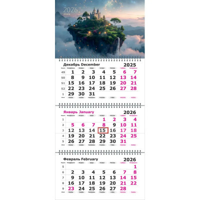 Календарь настенный 3-х блочный 2026 Attache Трио Стандарт, Замок, 305х675
